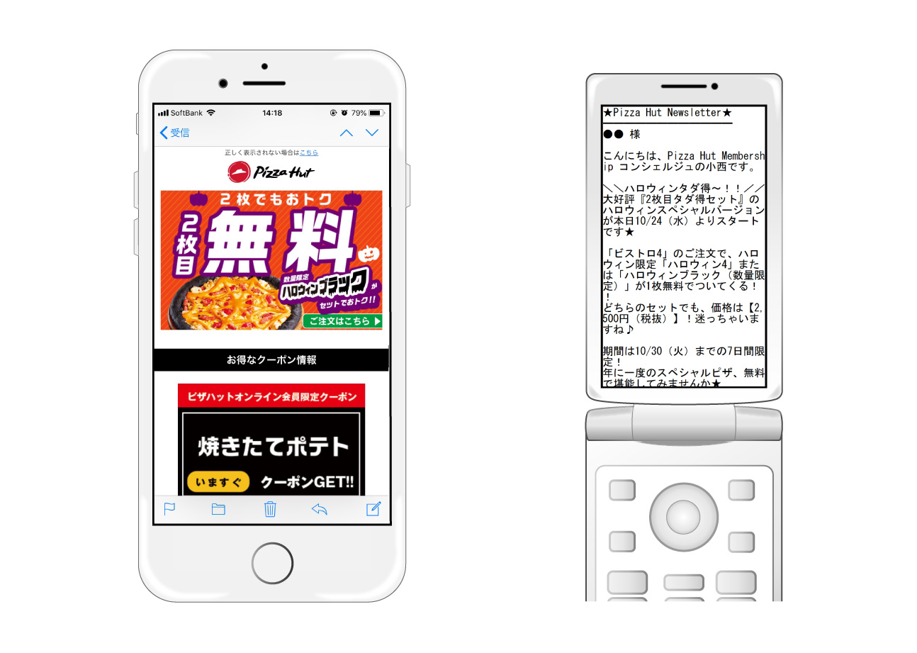 日本ピザハット様が導入されているMAツールのメルマガ配信機能を利用してメルマガのライティング(フィーチャーフォン・スマートフォン)から配信まで担当しております。