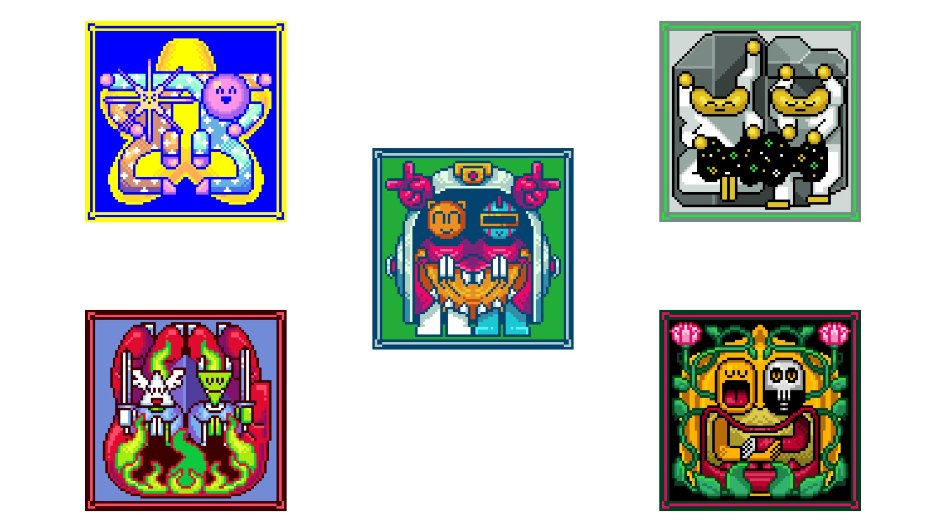 この作品は、2023年春に山梨県立美術館で開催されたたかくらかずき氏の個展「メカリアル」で生まれた作品シリーズです。テーマは作家たかくらの地元である山梨県市川三郷町などに多くある二神一体の道祖神で、山梨県出身のシュルレアリスム画家、米倉悠仁の作品にも登場したテーマです。 たかくらの制作した道祖神には「現実と仮想」「善と悪」「生と死」「自由と重力」「瞬間と永遠」というように、相容れないはずの別々の概念が一つに融合する象徴として描かれています。これらのモチーフは、今まで真逆のものだと思っていた価値観が融合され新たなものに変化していくという、現代における混乱と希望を象徴しています。 NFTとなった道祖神はたかくらかずき氏とゆめみによるオンラインの神社「ハイパー神社」に祀ることができます。